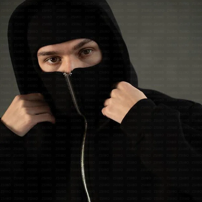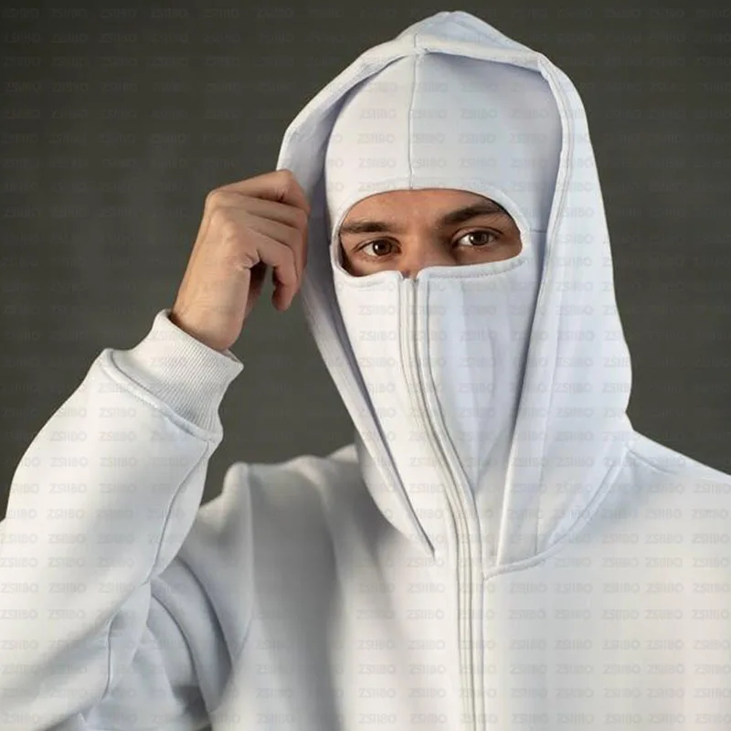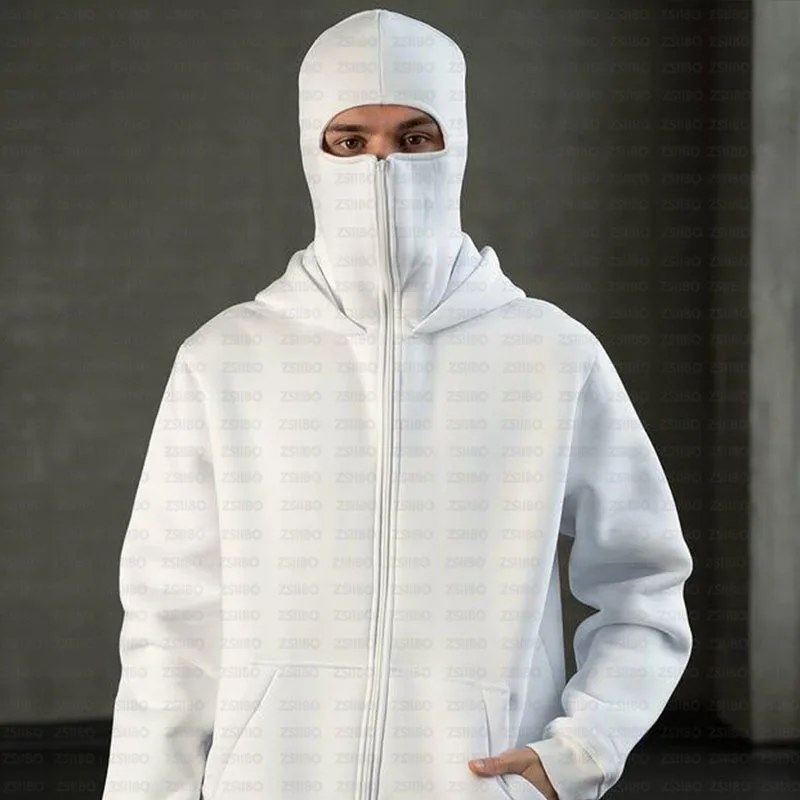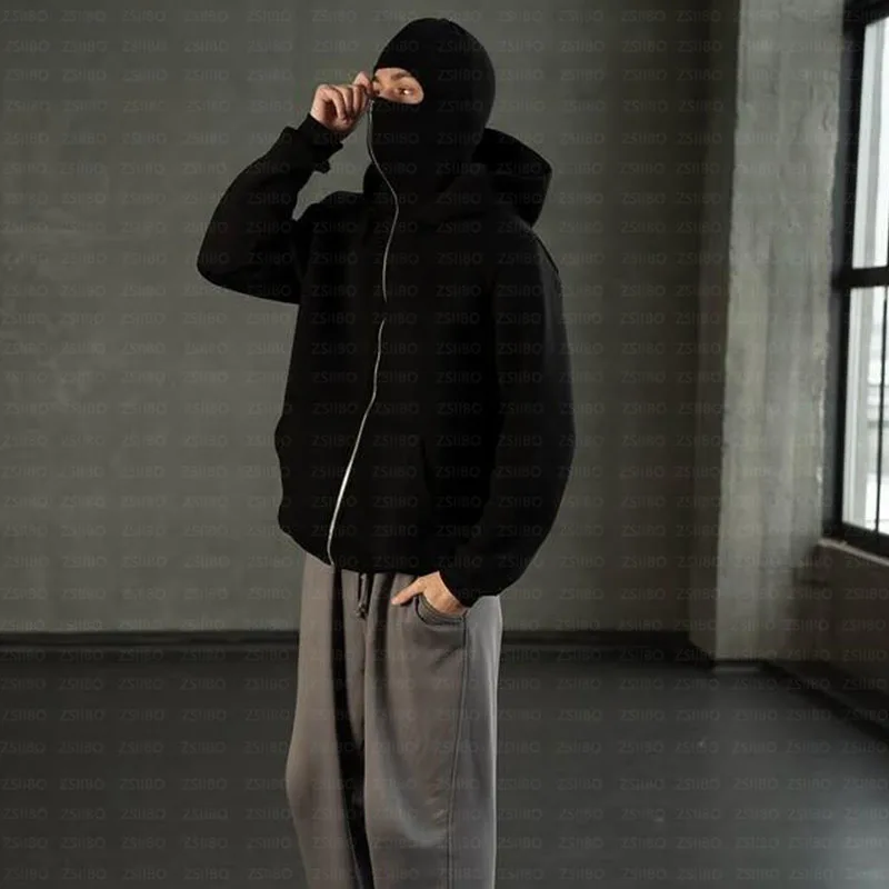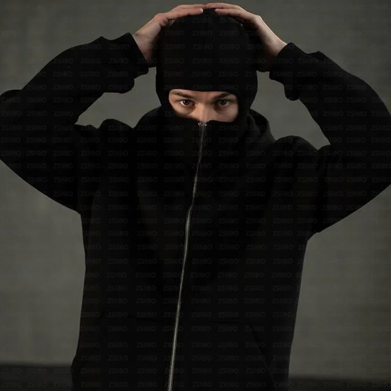 Balaclava Men Zip Hoodie Warm Casual Jacket Sweatshirt Y2K Hooded Face Mask Zipper Design Sports Jacket Outdoor Coat Clothing