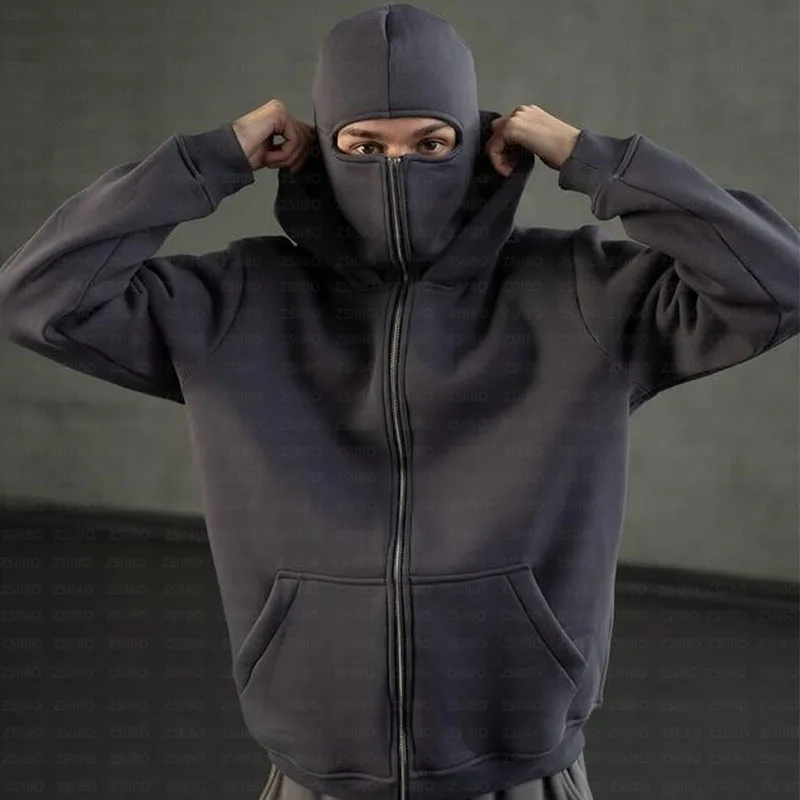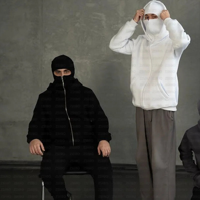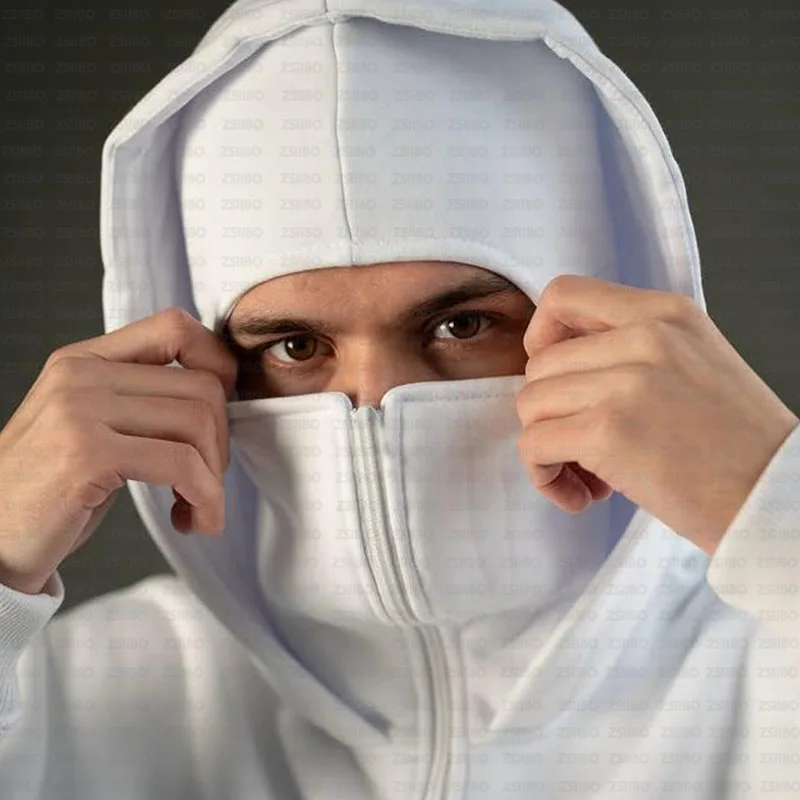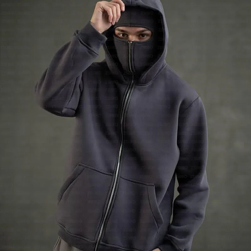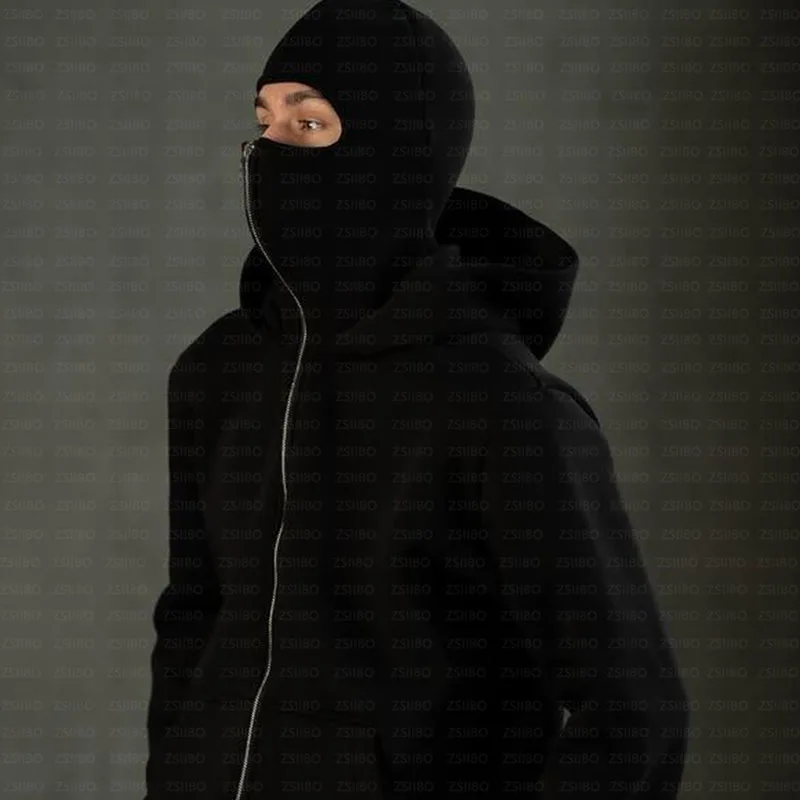 Balaclava Men Zip Hoodie Warm Casual Jacket Sweatshirt Y2K Hooded Face Mask Zipper Design Sports Jacket Outdoor Coat Clothing